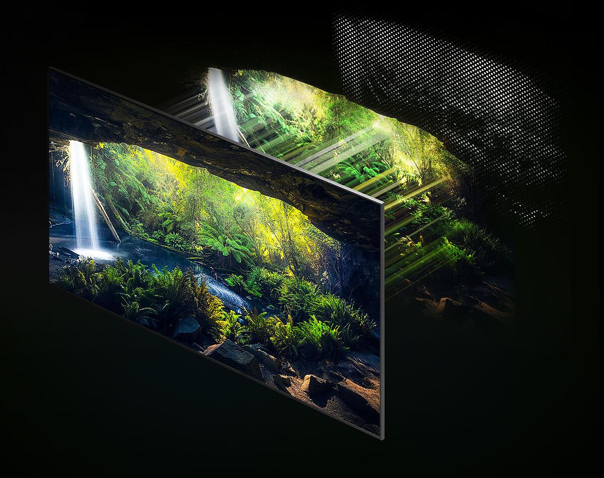 La potente evolución de Neo QLED 8K viene con una tecnología de atenuación de la retroiluminación que controla con precisión nuestros LED Quantum Mini patentados. Detalles inimaginables expresados tanto en el negro más oscuro como en el blanco más puro con x1,5 más zonas de iluminación que la tecnología Quantum Matrix normal.