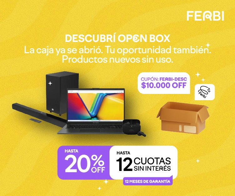 Los productos Open Box son equipos originales que nunca fueron utilizados, pero cuyo empaque fue abierto por motivos de exhibición, control o devolución sin uso. Funcionan perfectamente y se encuentran en excelente estado estético. Pueden presentar una caja abierta o con leves marcas, pero el producto está en óptimas condiciones.