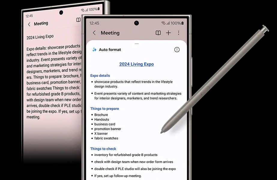 Note Assist la hace corta. Simplemente comenzá a escribir y dale la forma de un resumen claro y fácil de revisar más adelante. Y cuando estés buscando una nota antigua, las nuevas portadas muestran resúmenes sencillos, lo que mantiene a tu pantalla con un aspecto organizado para que puedas encontrar las cosas con facilidad.